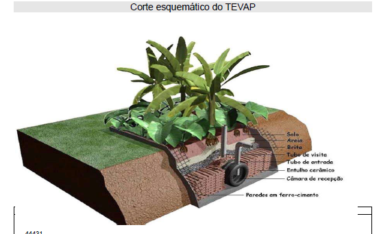 O TeVap tem por função o tratamento das águas negras. Consiste em uma fossa de 2 metros de