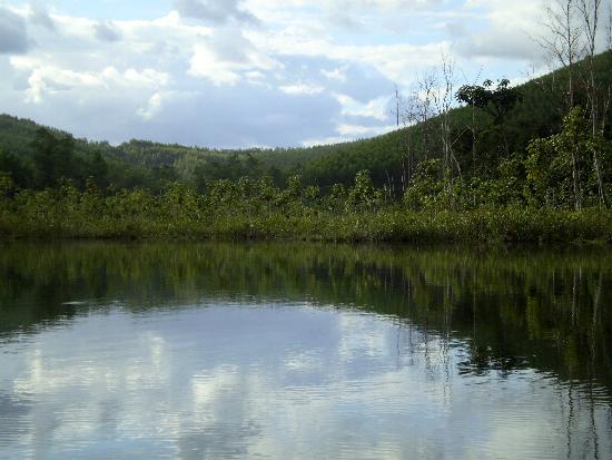 Figura 1 - Dois aspectos da Lagoa Jacaré, médio rio Doce. Essa lagoa está localizada próximo a estrada que liga a cidade de Coronel Fabriciano à cidade de Baixa Verde. A lagoa possui parte de sua bacia de captação tomada por monocutivos de Eucalyptus. Existem ainda vários sitios e clubes de pesca ao longo de suas margens. Um aspecto interessante desse lago é a sua grande diversidade de biótopos e áreas úmidas o que provavelmente explica a grande diversidade de organismos planctônicos encontrados nesse ambiente.