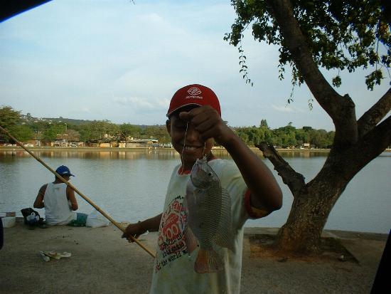 Figura 1 - Diferentes aspectos da Lagoa Central (Lagoa Santa) como é conhecida a principal lagoa da cidade mineira de Lagoa Santa. As margens da lagoa necessitam de uma intervenção urgente do poder público no sentido de promovar a sua rápida recuperação pois são inúmeros os exemplos do descaso e da ignorância: paliteiros abandonados remanescentes de plataformas usadas pelos antigos moradores para a prática do natação e da pesca, focos de assoreamento, entrada não controlada de drenagem urbana, esgotos clandestinos, presença de aves (patos) exóticos, etc. Durante os fins de semana, existe uma grande afluência de pescadores de vara que capturam grandes quantidades de um peixe exótico à bacia do São Francisco: a tilápia. Raramente, os pescadores conseguem pegar algum exemplar da fauna nativa de peixes tais como a traíra ou o cará.