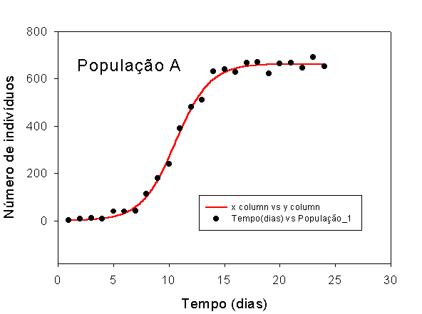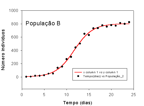 | Dias (t) | População "A" (Nt) | População "B" (Nt) |