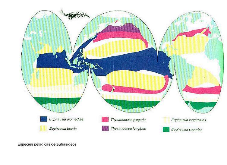 Os crustáceos eufrasídeos são muito importantes nas zonas pelágicas marinhas produtivas. Abaixo fornecemos a distribuição desses organismos nos oceanos. O mapa abaixo foi extraído de Sumich (1999).