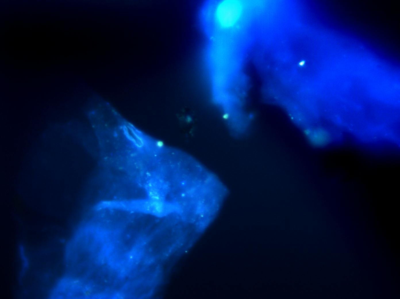 Fotografia 1 - Microfotografias do picoplâncton encontrado na lagoa do Bispo (D. Helvécio) no Parque Estadual do Rio Doce. Microscopia de epifluorescência, camera refrigerada Coolsnap. Foto de Ricardo P. Coelho.
