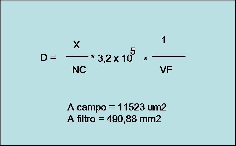F.C.= fator 1 (relação área do filtro e área do campo de contagem)..